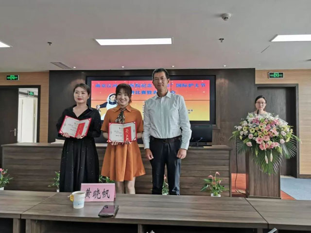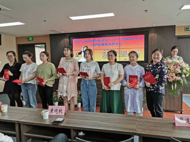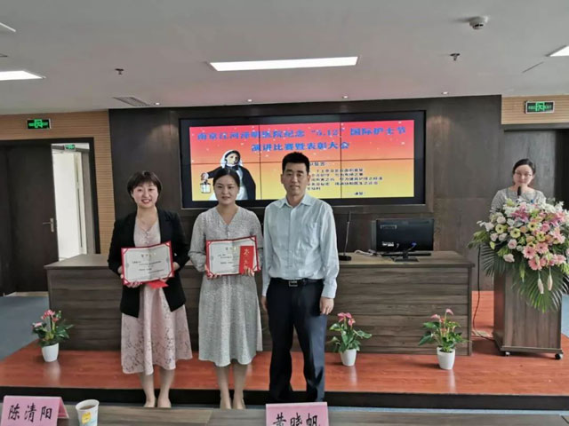 金楊與鄭露露表現優異,被選為代表,參加了5月11日集團舉行的南京江河澤明醫院“5.12”國際護士節表彰大會。并分別獲得演講比賽第一名和CPR操作比賽第二名。
