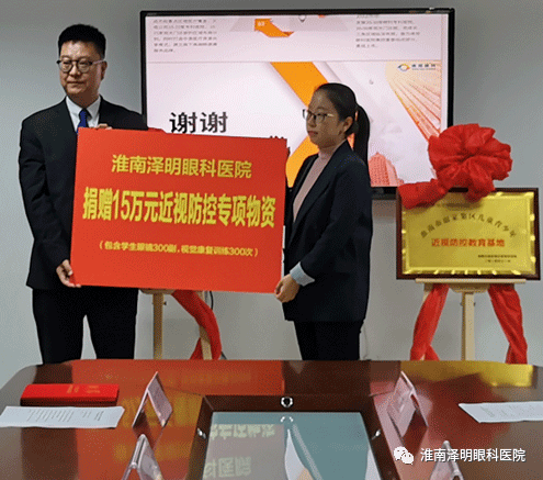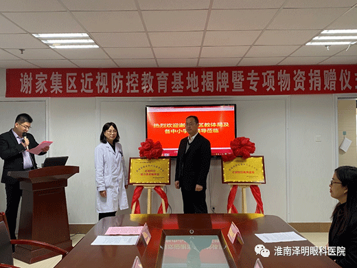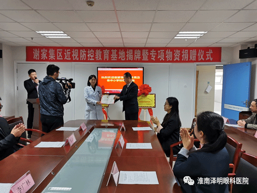 2020年11月13日上午,“謝家集區兒童青少年近視防控教育基地”及“近視防控視力普查服務站”的揭牌儀式在淮南澤明眼科醫院七樓會議室舉行。